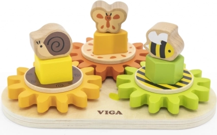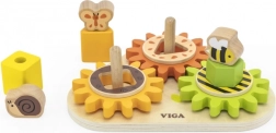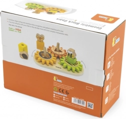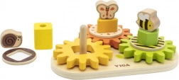 De houten motorische sorteerset met tandwielen van Viga is het ideale speelgoed voor kinderen en combineert plezier met leren. Het veilige ontwerp zonder scherpe randen en de kleurrijke uitstraling stimuleren de ontwikkeling van motorische vaardigheden en geduld bij kinderen.