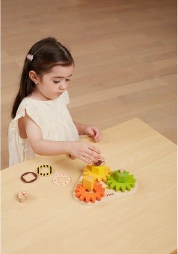 Geef je kinderen urenlang plezier en leren met de motorische sorteerset met tandwielen van Viga. Dit speelgoed is ontworpen om de ontwikkeling van het geheugen, de aandacht, het herkennen van kleuren en het begrip van mechanische principes te stimuleren. Kinderen leren basisbeginselen van de natuurkunde door het draaien van de tandwielen, wat ook helpt om coördinatie en precisie te verbeteren.