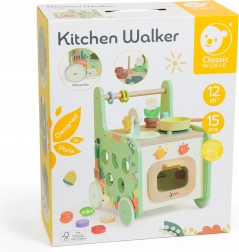 Het houten keukentje en de loopwagen van Classic World combineren de functionaliteit van een loopwagen met de speelmogelijkheden van een keuken. Het is een multifunctioneel speelgoed voor kinderen vanaf 12 maanden dat leren en ontwikkeling op verschillende niveaus ondersteunt: