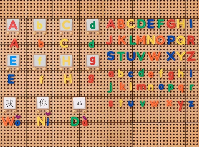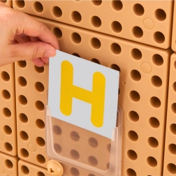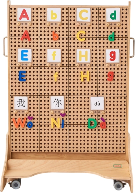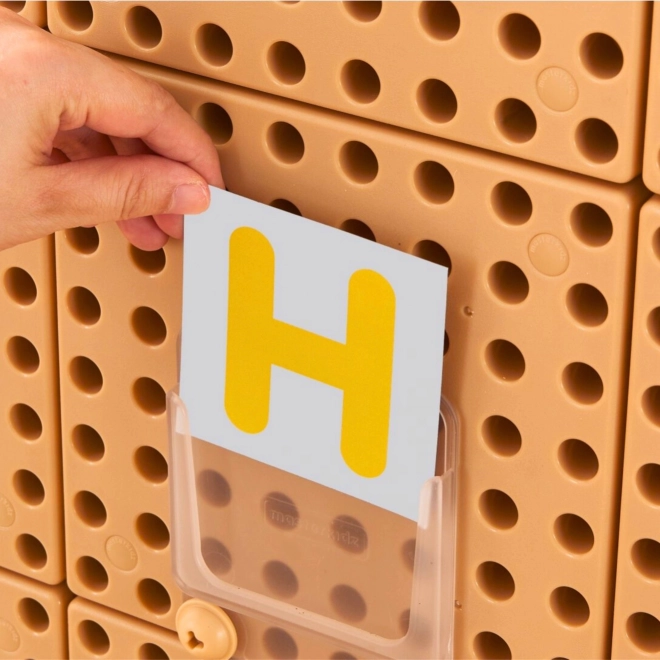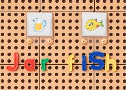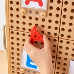 Letters met pinnetjes schuift u eenvoudig in geperforeerde panelen. De tactiele en visuele prikkel ondersteunt het onthouden, de fonologie en de juiste oriëntatie van letters.