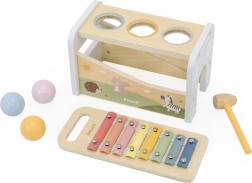 - Houten muzikaal en motorisch speelgoed 2-in-1 (hamerbank + xylofoon)