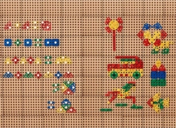 Kinderen schroeven, leggen en maken patronen of afbeeldingen – ze oefenen oog-handcoördinatie, precisie en esthetisch inzicht.