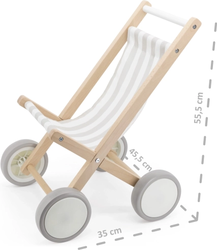 De wagen is compatibel met poppen en knuffels tot 38 cm en wordt zo al snel een favoriet accessoire in de kinderkamer. De eenvoudige, natuurlijke look past prachtig in zowel moderne als klassieke interieurs.