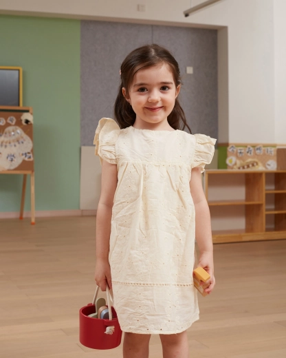 In de doos vind je een emmer, een handveger met schraper, een houten sprayfles en een roller – alles wat een kind nodig heeft voor een “grote schoonmaak”. Stimuleert fantasie en rollenspel.