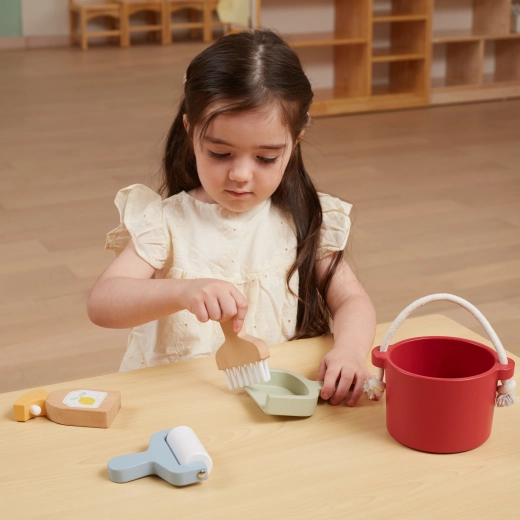 De stijlvolle houten schoonmaakset POLARB van VIGA verandert het dagelijkse opruimen in een leuk spel. Bevat alles wat nodig is voor imitatiespel – een emmer met touwhandvat, een handveger met schraper, een sprayfles en een roller. Het spel bevordert de fijne motoriek, zelfstandigheid en gevoel voor orde, terwijl de hoogwaardige houten afwerking en pasteltinten zorgen voor veilig en aantrekkelijk speelplezier.