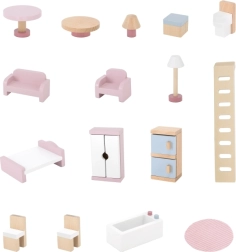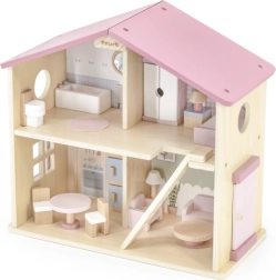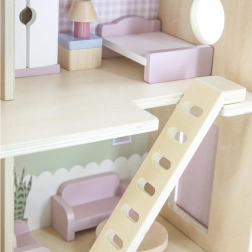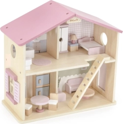 Het houten poppenhuis Viga PolarB biedt kinderen een prachtige omgeving voor creatief spel. Twee verdiepingen met een trap bieden een keuken, woonkamer, badkamer en een knusse slaapkamer – elke kamer is zorgvuldig ontworpen en uitgerust met gedetailleerde accessoires. Dankzij de stevige afwerking van hoogwaardig hout en tijdloze pasteltinten is het huisje duurzaam, veilig en staat het prachtig in de kinderkamer.