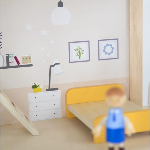 Dankzij de robuuste houten constructie en gladde randen is het spel veilig en aangenaam. Maar liefst 32 onderdelen stimuleren de verbeelding, fijne motoriek en sociale vaardigheden. Ideaal voor poppen tot 10 cm.