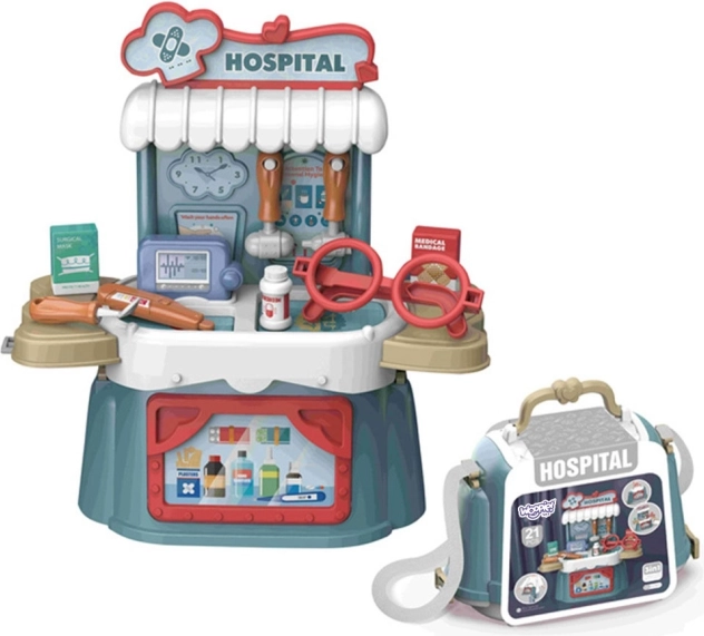 Ontdek de veelzijdige WOOPIE 3-in-1 kinderset – te dragen als koffer, tas of uit te klappen tot een mini-praktijk. Kinderen zullen de realistische instrumenten zoals de stethoscoop, thermometer en bloeddrukmeter geweldig vinden en met plezier dokter en patiënt spelen. Dit spel helpt de wereld van volwassenen te begrijpen en vermindert angst voor de dokter.