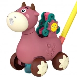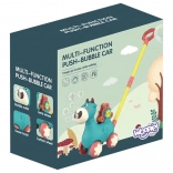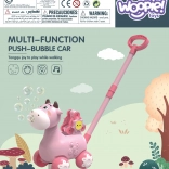 De koeloopwagen van WOOPIE is de ideale hulp bij het leren lopen. Kinderen kunnen hun favoriete koe voor zich uit duwen, die tijdens het rijden bubbels blaast rechtstreeks uit de mond. Draai simpelweg het potje met vloeistof vast (in de set zitten 2 flesjes) en het plezier kan beginnen. Voor extra sfeer zorgen de prettige melodieën, die je met een knop kunt in- en uitschakelen.