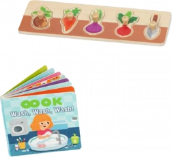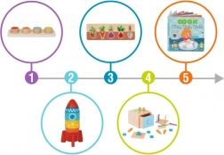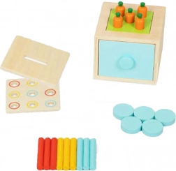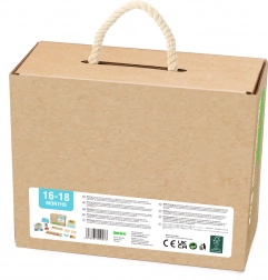 Houten set ontworpen ter ondersteuning van de cognitieve ontwikkeling en fijne motoriek voor kinderen vanaf 16 maanden.