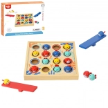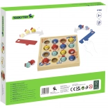 Het houten spel Vliegende visjes van Tooky Toy biedt geweldig plezier voor kinderen en volwassenen, gericht op de ontwikkeling van fijne motoriek en coördinatievaardigheden. Plaats de kleurrijke visjes op het speciale platform en strijd om wie alle visjes het snelst in de juiste openingen kan plaatsen.