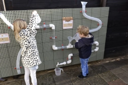 Kinderen kunnen vrij experimenteren met de opstelling van buizen en hun systemen uitbreiden met nieuwe elementen.