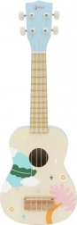 Deze blauwe houten ukulele bootst een echt instrument uitstekend na en is ideaal voor de eerste stapjes in de muziekwereld. Kinderen leren basisakkoorden en ritme, kunnen hun eerste thuisconcert geven en tegelijk hun gevoel voor muziek en zelfexpressie ontwikkelen. Het oppervlak is afgewerkt met niet-giftige verven en de constructie bestaat uit duurzame materialen voor een lange levensduur.