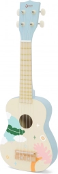 De ukulele heeft vier snaren, stemmechanieken en gladde, veilige randen. De aangenaam gedempte klank is geschikt voor de kinderkamer en voor onderweg. Spelen op de ukulele bevordert creativiteit, auditieve waarneming en cognitieve vaardigheden, en versterkt tevens de hand-oogcoördinatie.