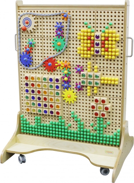Dankzij de mobiele basis op wieltjes verplaats je het bord eenvoudig naar waar het nodig is. Het is volledig compatibel met een breed scala aan MASTERKIDZ-accessoires voor STEM-borden (pinnen, “kristallen”, schroeven, tandwielen, buizen, letters en cijfers, enz.), zodat je leren en spelen continu kunt uitbreiden.