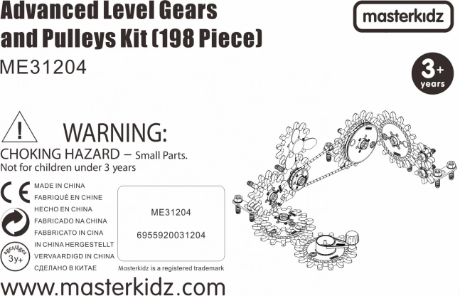 Set tandwielen en poelies MASTERKIDZ STEM, 198 onderdelen