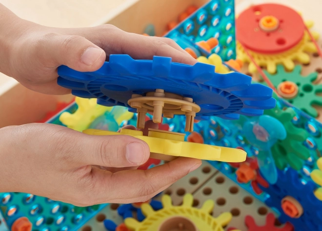 De set met 198 onderdelen opent de deur naar experimenteren met overbrengingen, rotatie en krachtoverdracht. De kleurrijke tandwielen grijpen soepel in elkaar, poelies met riemen en de kettinkje zorgen voor transmissie van kracht, zodat kinderen de principes van STEM-leren inzichtelijk begrijpen – van oorzaak tot gevolg.