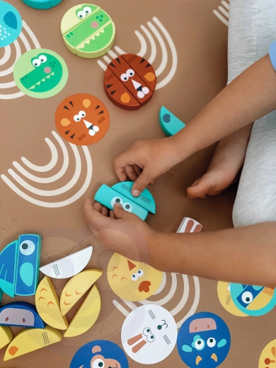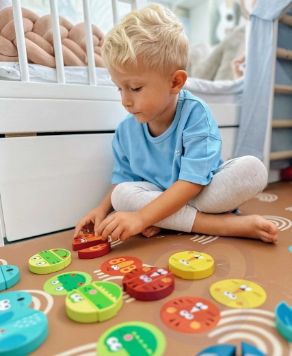 Dit pakkende familiespel combineert balanceren, kleuren sorteren en het herkennen van dieren. De toren van kleurrijke houten blokjes nodigt uit tot voorzichtig uittrekken en traint de oog-handcoördinatie, concentratie en samenwerking van kinderen. Ideaal voor samen spelen met broers, zussen en vriendjes.