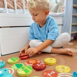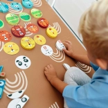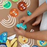 De set bevat dierenkaarten en een gekleurde dobbelsteen die bepalen welk blokje de speler moet uittrekken. Kwalitatieve houten uitvoering, gladde randen en milieuvriendelijke, veilige verf zorgen voor prettig en veilig spel. Het spel ondersteunt tevens het leren van kleuren, tellen en geduld.