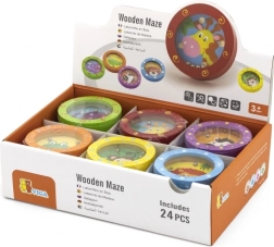 De VIGA houten doolhof is een leuk zakformaat spel voor kinderen dat ontdekkingsplezier combineert met vaardigheidsontwikkeling. Door te kantelen verplaatst het kind de metalen balletjes naar de juiste openingen volgens het dierenplaatje, waarbij het logisch denken, geduld en nauwkeurige bewegingen oefent.
