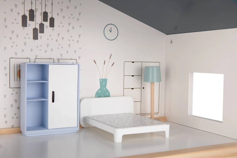 Het poppenhuis is gemaakt van duurzaam FSC-gecertificeerd hout en geschilderd met niet-giftige verven in zachte pasteltinten.