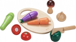 - Inhoud set: houten groentes met klittenband, snijplank, veilig houten mesje