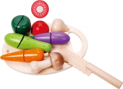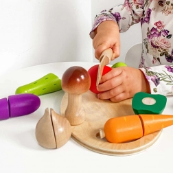 Ontdek een speelse keukenset voor de allerkleinsten: houten groentes met klittenband, een snijplank en een mesje voor veilig “snijden”. Stimuleert fijne motoriek, creativiteit en rollenspel vanaf 18 maanden. Gemaakt van natuurlijk hout en geverfd met niet-giftige verven.
