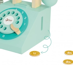 Deze houten telefoon in klassieke stijl biedt kinderen een authentieke speelervaring. Dankzij de draaischijf, de hoorn aan een koord en het inwerpen van munten leren kinderen gesprekken voeren, ontwikkelen ze sociale vaardigheden en oefenen ze oog-handcoördinatie. Zonder batterijen – met een prettig mechanisch belletje.