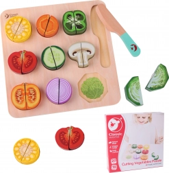 Deze set is perfecte aanvulling voor rollenspellen vanaf jonge leeftijd en biedt niet alleen plezier, maar ook educatieve waarde. Het bevat 20 verschillende elementen, waaronder een tweezijdig bord, een mes en groenten. Het speelgoed is bedoeld voor kinderen vanaf 18 maanden en is gemaakt van gelakt hout, geschilderd met niet-giftige verf, wat de volledige veiligheid garandeert.