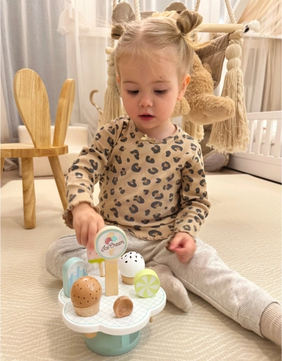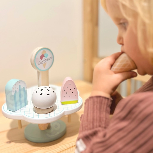 Deze prachtige houten ijsjesset is ideaal voor kinderen die van creatief spel houden. Pastelkleuren en zorgvuldige afwerking zorgen voor uren speelplezier bij het spelen van ijssalon of in de kinderkeuken. Een verantwoorde keuze voor de ontwikkeling van creativiteit en sociale vaardigheden. Magneten zorgen voor stabiliteit, waardoor het spel nog prettiger wordt.
