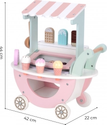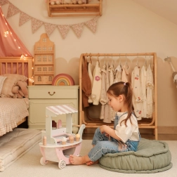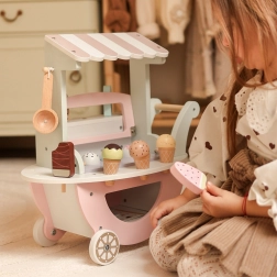 De houten ijskar Woopie Green is niet alleen een prachtig stuk in zachte pastelkleuren, maar biedt ook veel mogelijkheden voor creatief spel. Uw kind kan verkoper, klant of zelfs 'ijsmester' worden en zijn eigen ijscoupes naar eigen fantasie maken!