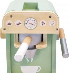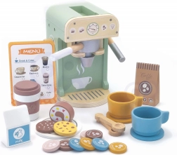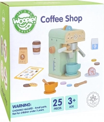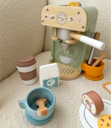 De set van Woopie Green is de ideale keuze voor kinderen die dromen van het worden van kleine barista's. Met 25 elementen, waaronder een koffiemachine, kopjes, capsules en melk, kunnen kinderen volwassenen nabootsen en hun vaardigheden ontwikkelen in het spelen van café. Deze set is gemaakt van natuurlijk hout en kindvriendelijke veilige kleuren, wat zorgt voor een realistische uitstraling en veilig spel.