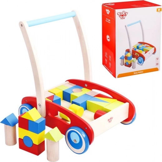 Stijlvolle houten loopwagen met blokken van het merk TOOKY TOY helpt kinderen vanaf 12 maanden bij de eerste stapjes en ontwikkelt hun vaardigheden. De stabiele constructie, het comfortabele handvat en de set van 23 gekleurde blokken stimuleren balans, motoriek en creativiteit tijdens het spelen en de eerste wandelingen.