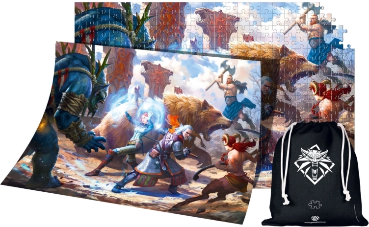 In de doos vind je alles voor comfortabel puzzelen – van een poster op schaal 1:1 tot een katoenen trekkoordzak voor de stukjes. Dankzij moderne druktechnologieën hebben de puzzels indrukwekkende en verzadigde kleuren die lang mooi blijven. Een geweldige keuze om te ontspannen, geduld te trainen en als stijlvol cadeau voor liefhebbers van games en de wereld van The Witcher.