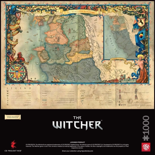 Gelicenseerde THE WITCHER-puzzel: Noordelijke Koninkrijken, 1000 stukjes. Hoge printkwaliteit, precieze stans, afmeting na het leggen ca. 68 × 48 cm. Geweldig cadeau voor fans.