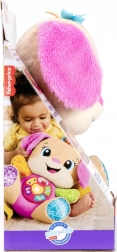 FISHER-PRICE Laugh & Learn Smart Stages Zusje is een superzachte knuffel én een slimme educatieve speelgoedvriend in één. Kinderen van 6 tot 36 maanden ontdekken eerste vaardigheden via liedjes, lichtjes en aanraakelementen. Door op de knopjes op het buikje te drukken licht het hartje op en starten liedjes, getallen of kleuren – leren wordt zo natuurlijk en vol plezier.