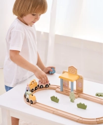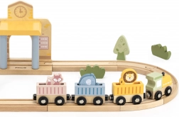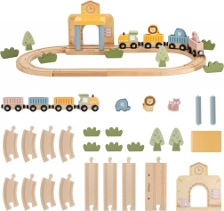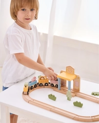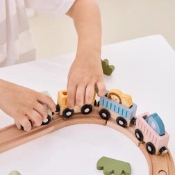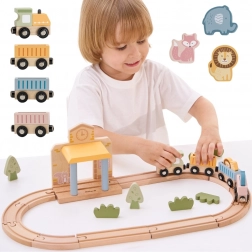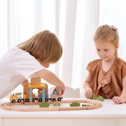 Dankzij het stevige ontwerp van hoogwaardig hout is de set duurzaam en veilig voor dagelijks spel. Kinderen ontwikkelen fijne motoriek, oog-handcoördinatie en creativiteit bij het bedenken van verhalen met de dieren – olifant, leeuw en vos. De treinbaan is perfect voor zowel solo- als samen spelen.
