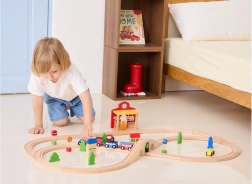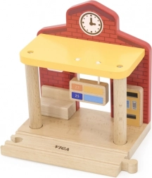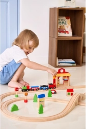 Het station is ideaal voor kinderscènes – van kaartverkoop tot aankomst en vertrek van treinen. De afmetingen zijn zo ontworpen dat het gemakkelijk op de meeste speeloppervlakken past en compatibel is met gangbare houten rails. Het spel bevordert fijne motoriek, oog-handcoördinatie en sociale vaardigheden.
