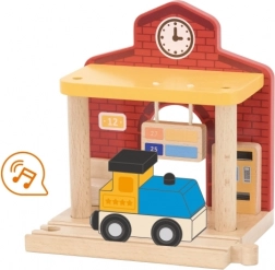 Breid je houten treinbaan uit met een compact station met realistische details. De stevige houten constructie, duidelijke klok en overkapping creëren een authentieke sfeer van een treinstation. Geïntegreerde batterij-effecten accentueren elke halte en ondersteunen interactief spel.