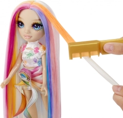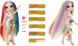 Ontdek een creatieve stylingwereld met de Rainbow High-pop Amaya. Met ultralang, gemakkelijk doorkambaar haar en een set gekleurde krijtjes maak je subtiele pastels of uitgesproken regenbooglokken. Spoel de kleuren eenvoudig uit en begin telkens opnieuw.
