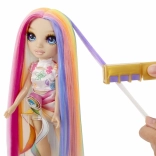 Word een kleine kapper met de Rainbow High-pop Amaya en creëer eindeloze kapsels dankzij extra lang regenbooghaar en haarkrijt. In de verpakking zitten vijf kammen met gekleurde krijtjes, zodat je kleurt, uitspoelt en opnieuw begint – zonder rommel en wanneer je maar een nieuw stijltje wilt proberen.