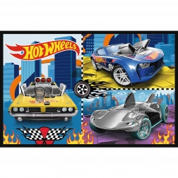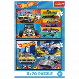 Deze puzzels bieden twee afbeeldingen om te leggen, wat meerdere kinderen in staat stelt om samen te spelen. Elke legpuzzel bevat 70 stukjes en vormt een afbeelding met afmetingen van 275x180 mm. Hot Wheels motieven zullen elke kleine autoliefhebber aanspreken.