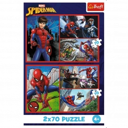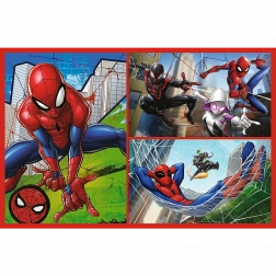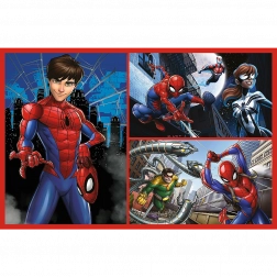 Spinnenverhalen zijn puzzels die collages tonen met helden uit de animatie Marvel Spider-man. Elke puzzel vormt een afbeelding van 275x180 mm.