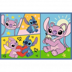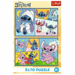 De puzzelset 2x70 stukjes biedt twee unieke puzzels in één verpakking, wat dubbel zoveel plezier garandeert. Met deze set kunnen kinderen de wereld van Lilo en Stitch ontdekken en afbeeldingen maken van hun favoriete sprookjeshelden.