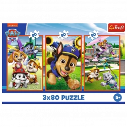 Puzzel 3x80 van het merk Trefl bevat drie leuke puzzels met 80 stukjes in één verpakking, ideaal voor de ontwikkeling van de creativiteit van kinderen en voor samenwerking tijdens het puzzelen.