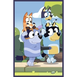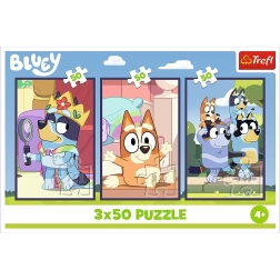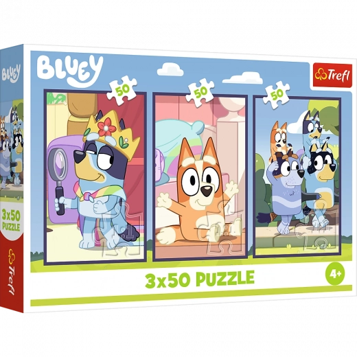 De set Familie Bluey bevat drie geweldige puzzels, elk met 50 stukjes. Elke puzzel toont geliefde personages uit de animatieserie Bluey en vormt na voltooiing prachtige afbeeldingen van 275x180 mm. Deze puzzelvariant is geweldig voor groepswerk en bevordert teamwerk onder kinderen.
