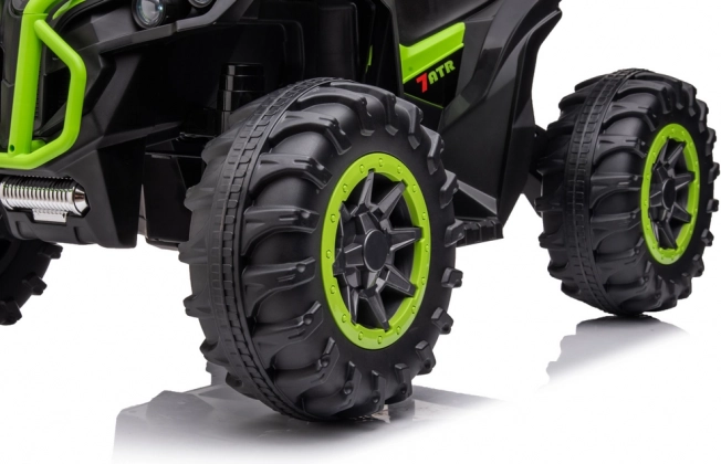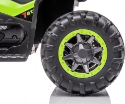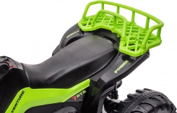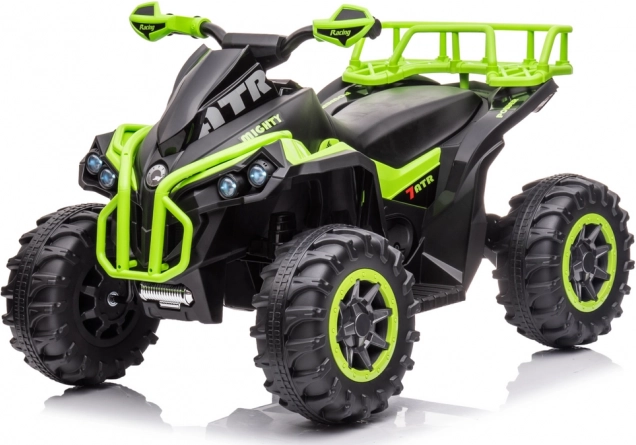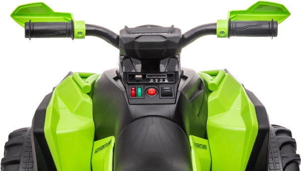 Deze elektrische kinderquad valt op door het opvallende groen-zwarte design en de realistische afwerking. Brede banden met diep profiel geven zekerheid op ruw terrein, terwijl het ergonomische stuur met antislip handgrepen zorgt voor comfortabel en eenvoudig bedienen. Ideaal voor de oprit, tuin en verharde paden.