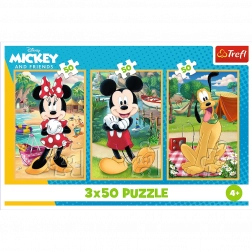 Ontdek de magie van puzzelen met een verpakking die drie verschillende puzzels van 50 stukjes biedt. Elk motief brengt een vrolijke vakantiesfeer met iconische personages Mickey Mouse, Minnie en Pluto. Ideaal om samen te leggen met broers en zussen of vriendjes.