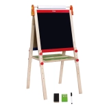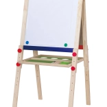 Stimuleer de creativiteit van kinderen met het dubbelzijdige magnetische bord van Viga – aan de ene kant een krijtbord, aan de andere kant een wisbaar whiteboard. De stabiele houten standaard, een papierrol om op te tekenen en het praktische meegeleverde accessoirespakket maken het tot een ideaal cadeau voor kleine kunstenaars.