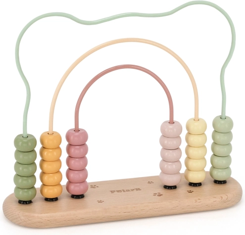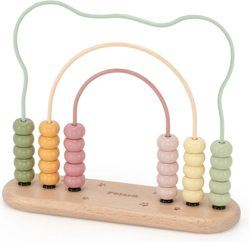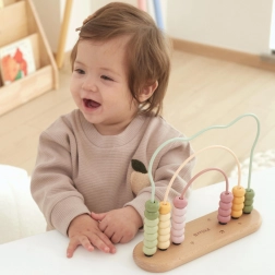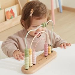Dit kwalitatieve houten labyrint met pastelkleurige kralen stimuleert de vroege ontwikkeling van het kind. De stabiele houten basis en gladde metalen banen zijn ontworpen voor veilig spel dat logisch denken, concentratie en geduld bevordert. Het minimalistische design in zachte kleuren past in elke kinderkamer.